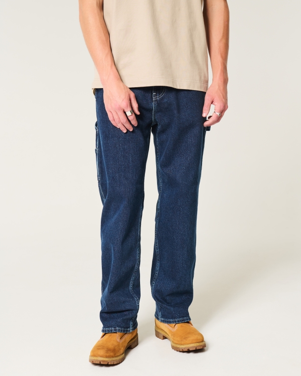 這款超舒適的油漆工牛仔褲具彈性,並採用寬鬆袋裝款褲腳設計。深色洗色牛仔面料,左環細節,額外口袋。 進口貨品