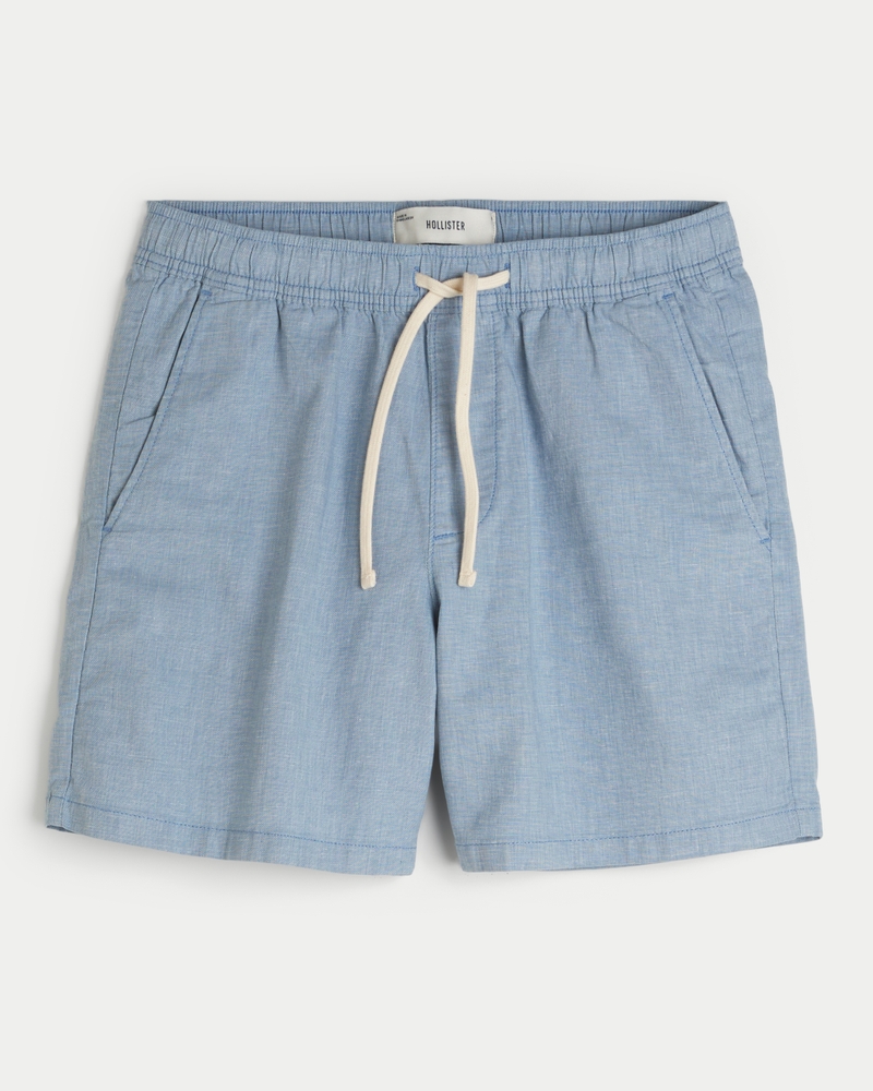 Mid-Thigh Linen-Blend Pull-On Shorts