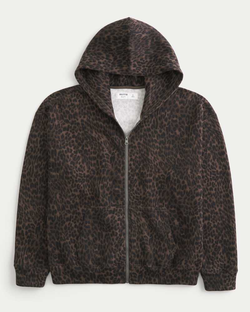 Sudadera de corte cuadrado con capucha y cremallera, y con estampado de leopardo