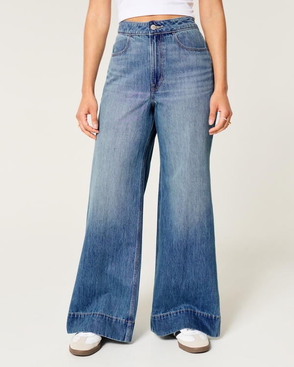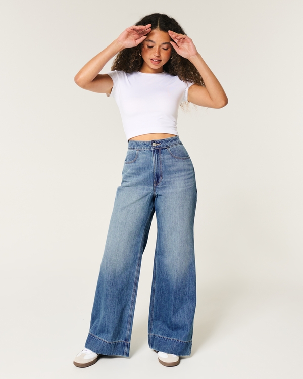 Jeans a Vita Ultra Alta Lavaggio Medio con Gamba Ampia