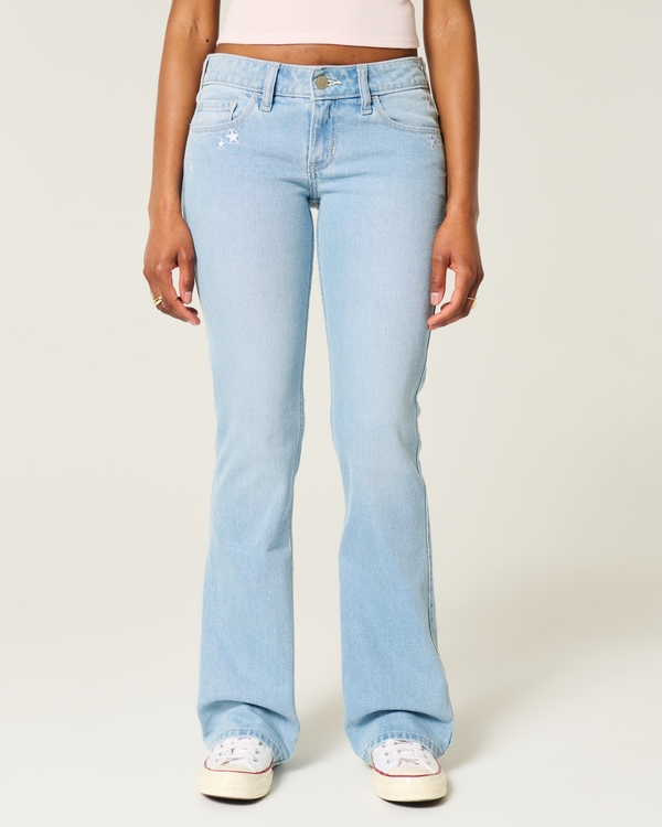Jeans a zampa a vita bassa con ricamo a stella