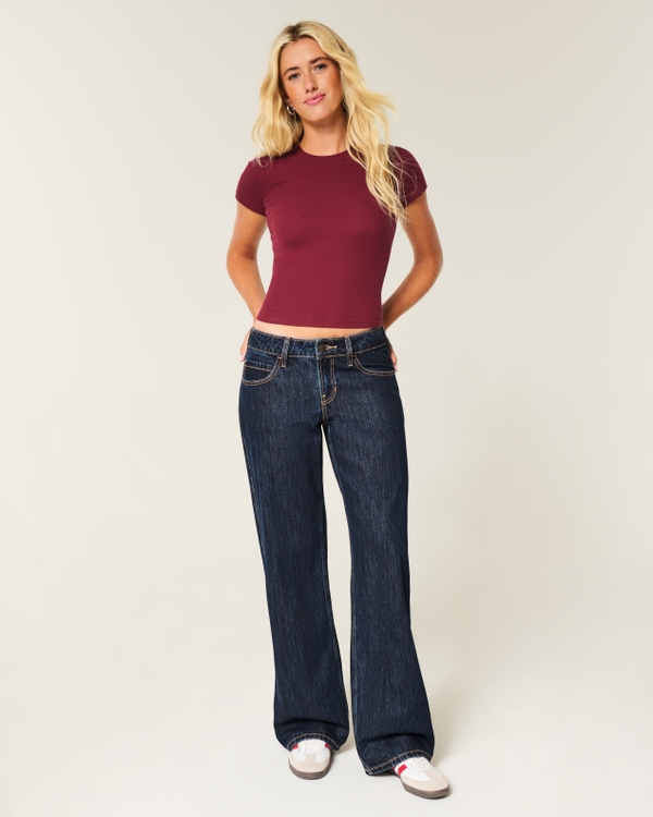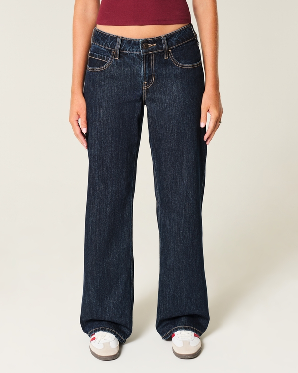 Jeans Baggy con dettaglio London ricamato, lavaggio scuro e vita bassa