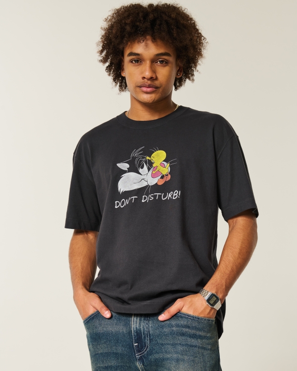 Maglietta boxy in tessuto pesante con stampa Looney Tunes