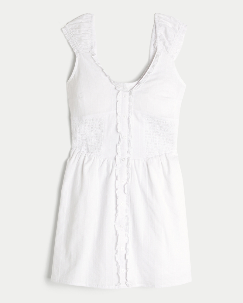 Vestito corto a punto smock con ruches