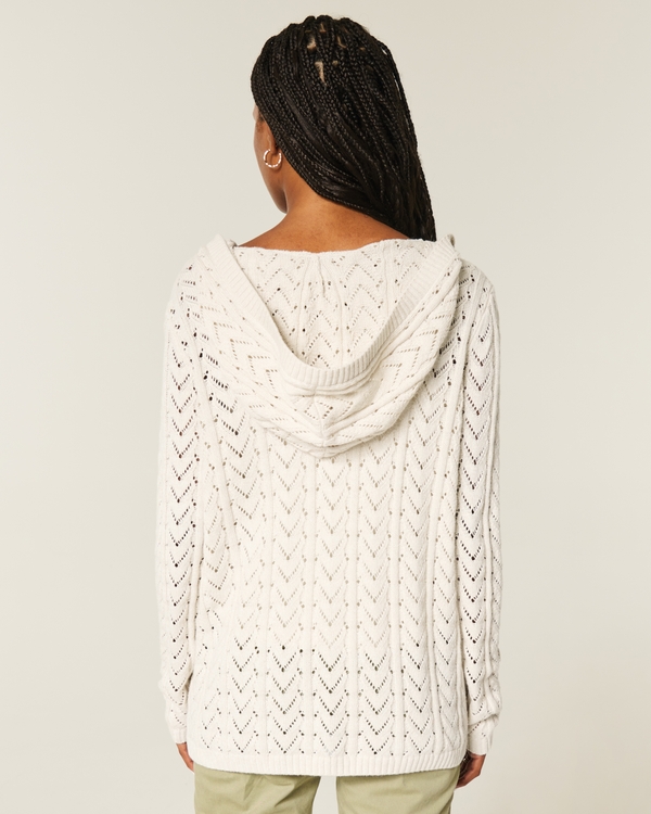 Cárdigan de punto calado sin cierre con capucha