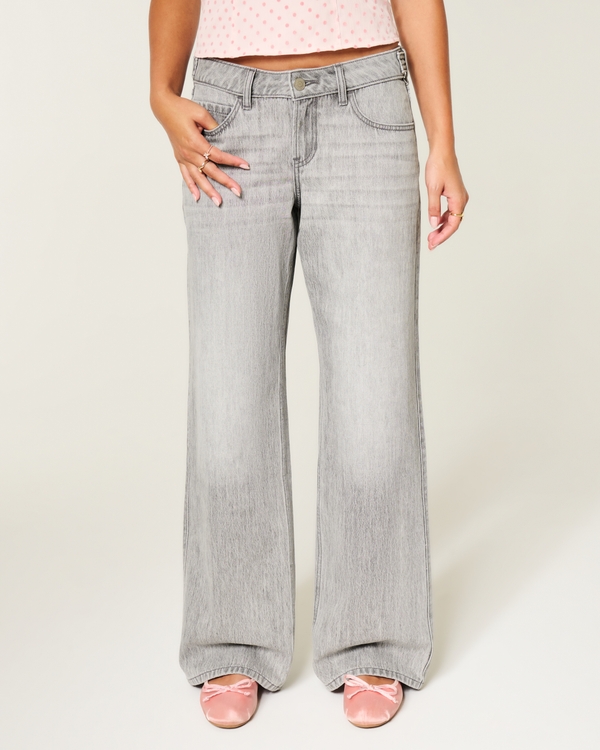 Adjustable Waist Low-Rise Grey Baggy Jeans