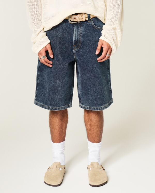 Below-the-Knee Dark Wash Super Baggy Denim Shorts