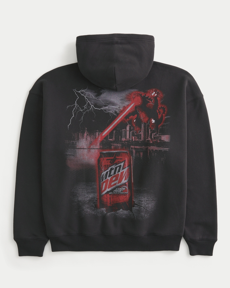 Boxy MTN Dew Code Red Graphic Zip-Up Hoodie