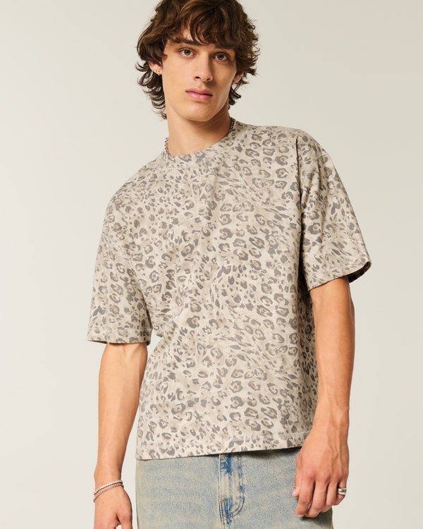 Boxy Crop Heavyweight Leopard Print Crew T-Shirt