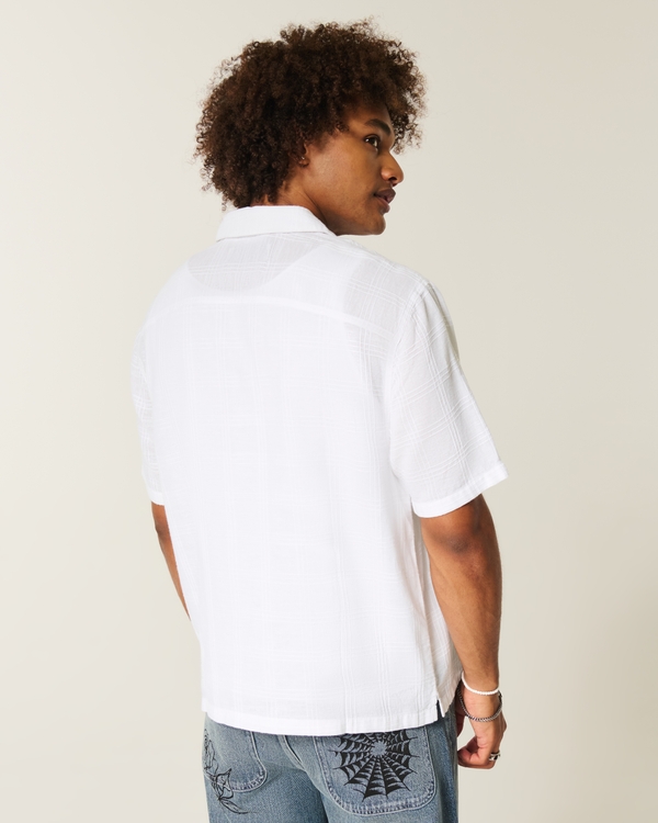 Boxy Linen-Blend Short-Sleeve Textured Shirt