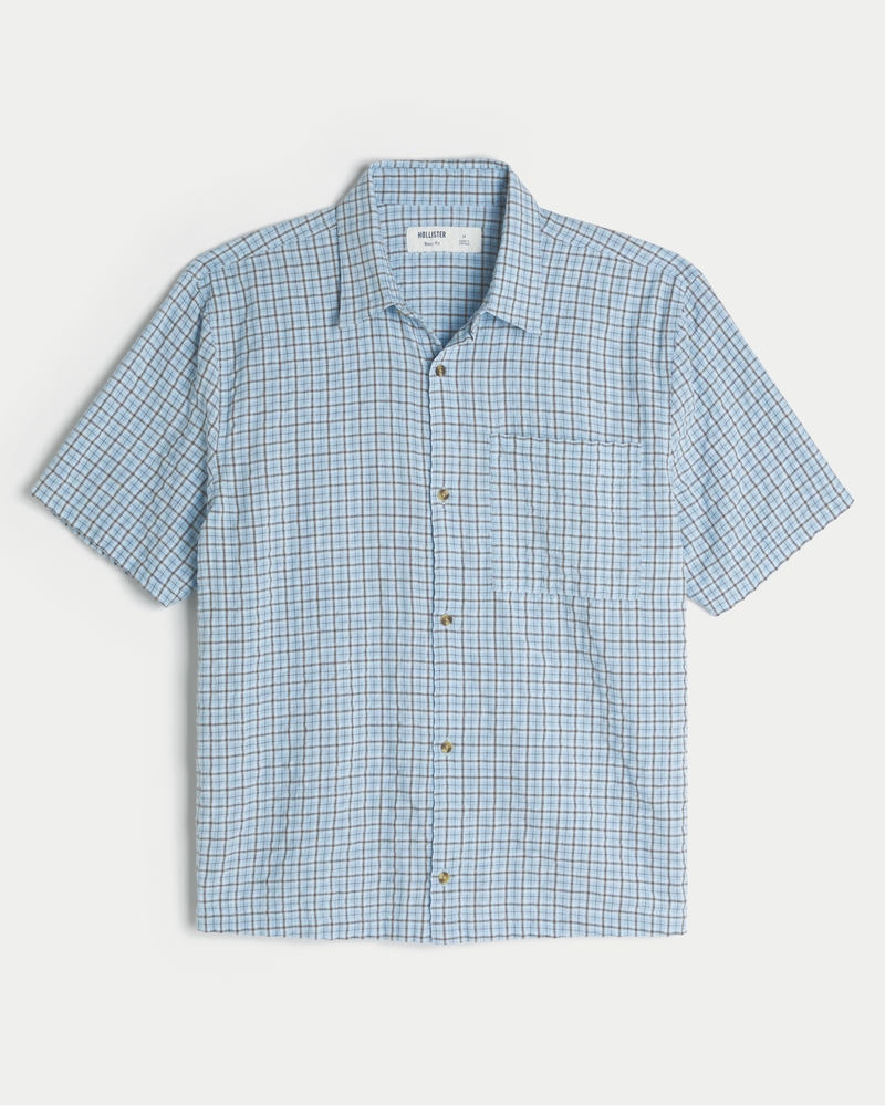 Boxy Short-Sleeve Seersucker Shirt