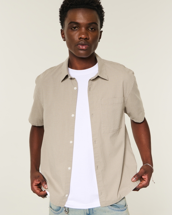 Color: tan micro check