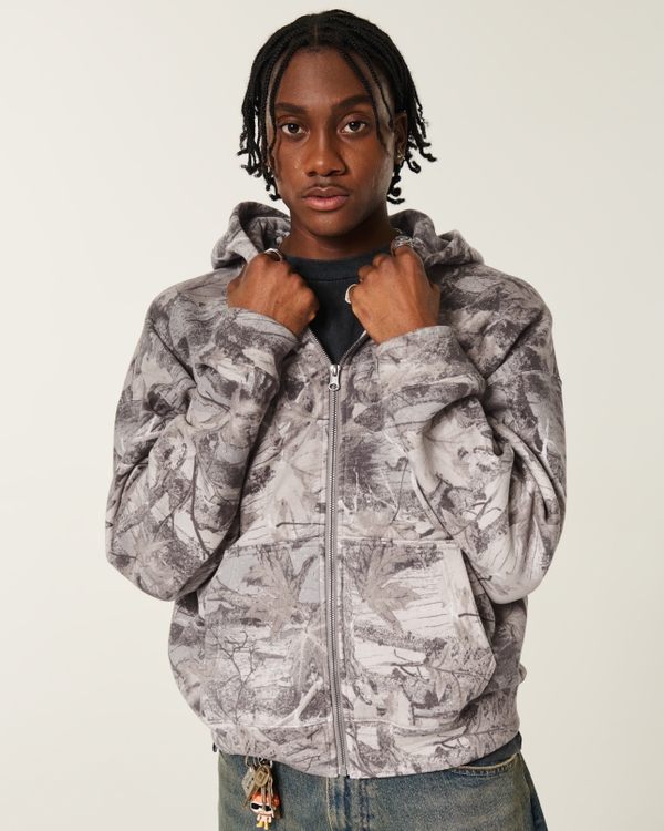 Hollister Feel Good Boxy Zip-Up Camo Hoodie