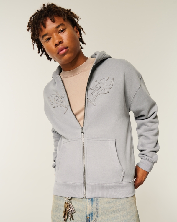Boxy Star Flame Graphic Zip-Up Hoodie