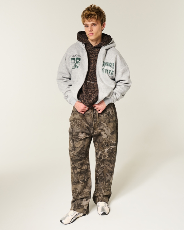 Boxy Zip-Up Michigan State University Spartans Graphic Hoodie