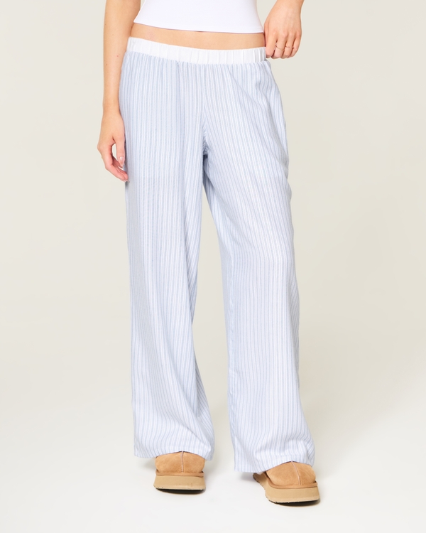 Contrast Waist Baggy Flannel Pants