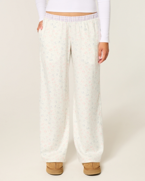 Contrast Waist Baggy Flannel Pants