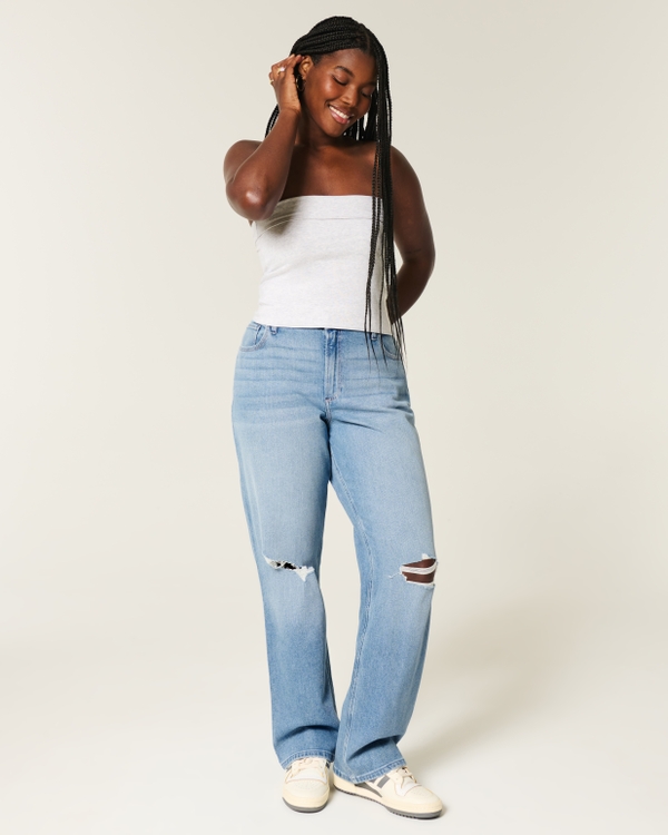 Curvy High-Rise Ripped Medium Wash Dad Jeans