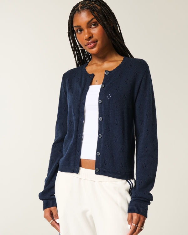 Eyelet Crew Cardigan