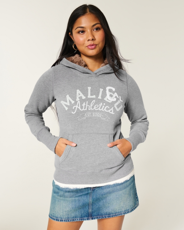 Hollister Feel Good Faux Fur-Lined Hood Graphic Hoodie