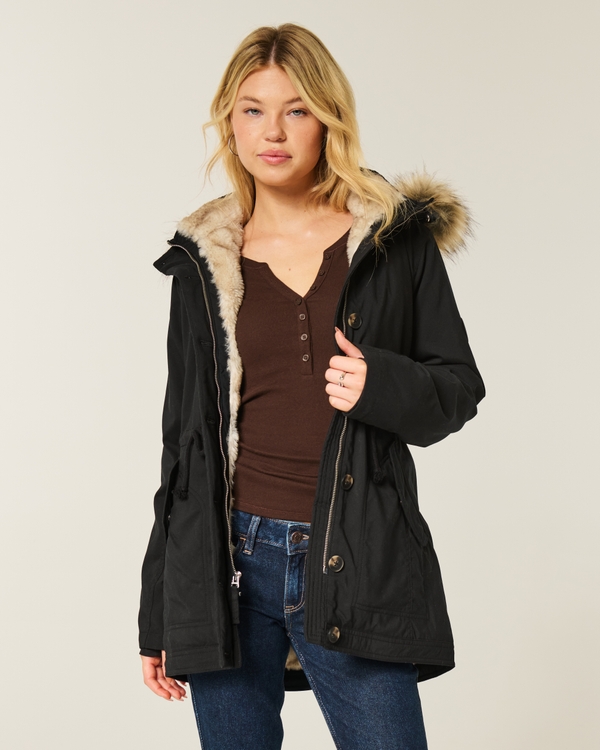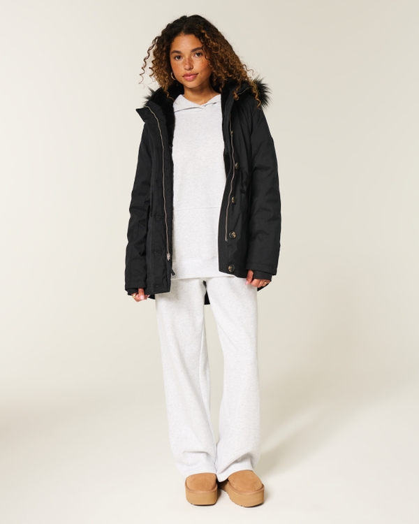 Faux Fur Hood Trim:68% Acrylic, 16% Modacrylic, 16% Polyester / Faux Fur Lining:100% Polyester / Hood Filling:100% Recycled Polyester Fibers / Shell:97% Polyester, 3% Elastane / Sleeve And Side Panel Filling:100% Recycled Polyester Fibers / Sleeve And Side Panel Lining:100% Polyester / Structural Component Filling:100% Recycled Polyester Fibers