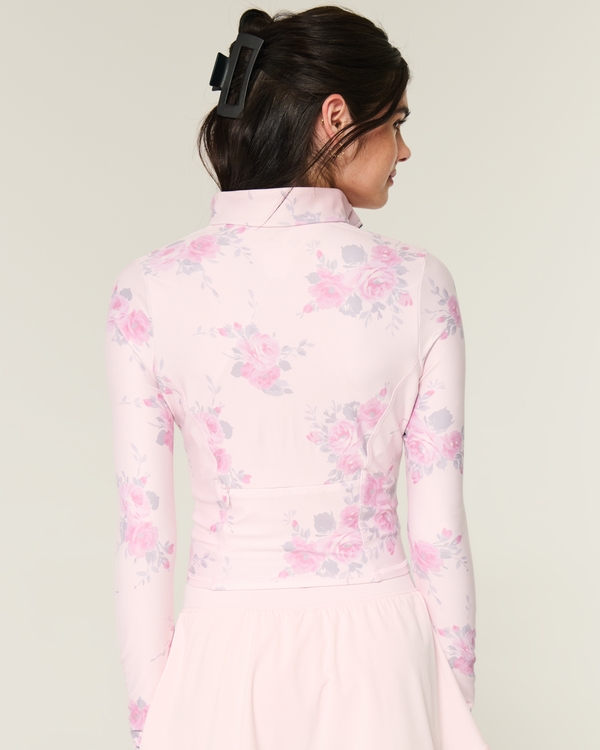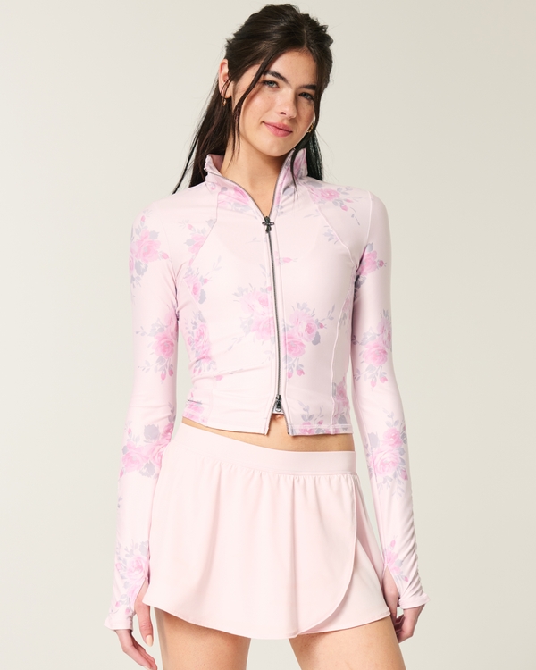 Designed in our breathable, 4-way stretch, moisture-wicking Recharge fabric with a super soft, brushed feel. Dual zipper closure, front pockets, long sleeves with ruched detailing and thumb openings. Slim Fit. Imported.