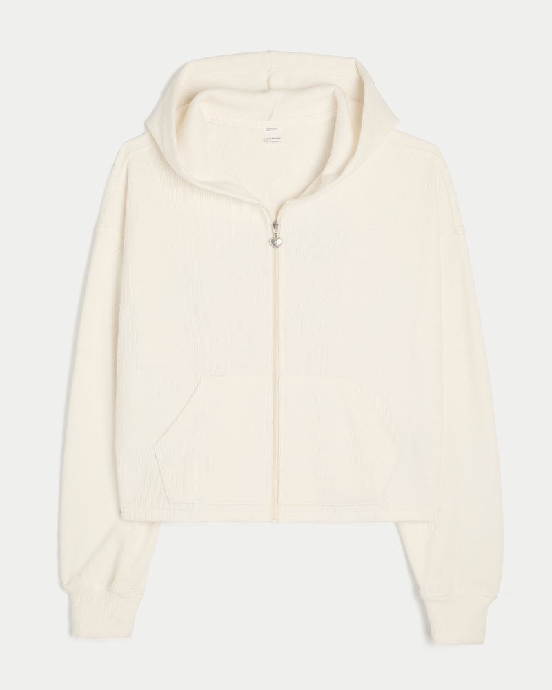Relaxed Waffle Zip-Up Hoodie