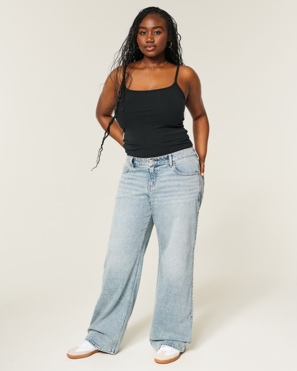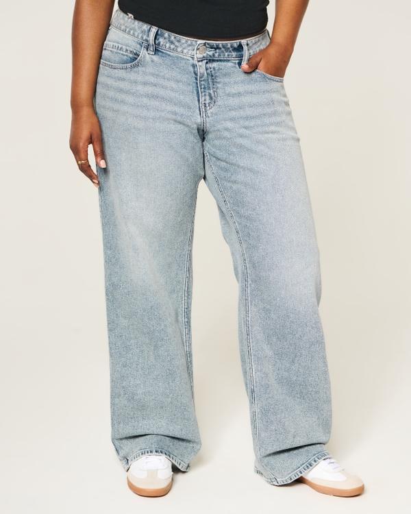 Hollister Andi Adjustable Waist Low-Rise Light Wash Back Buckle Baggy Jeans