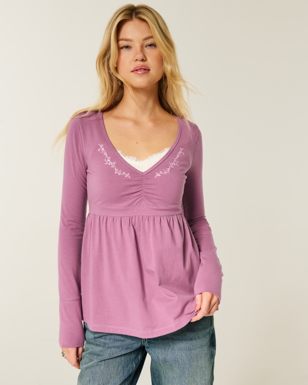 Long-Sleeve Pinch Bust Babydoll Top