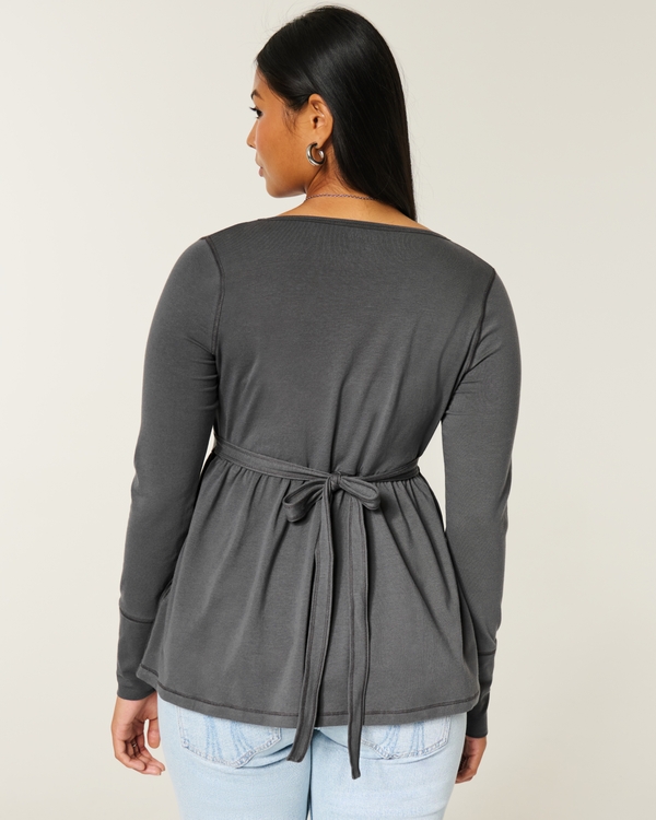 Long-Sleeve Pinch Bust Graphic Babydoll Top
