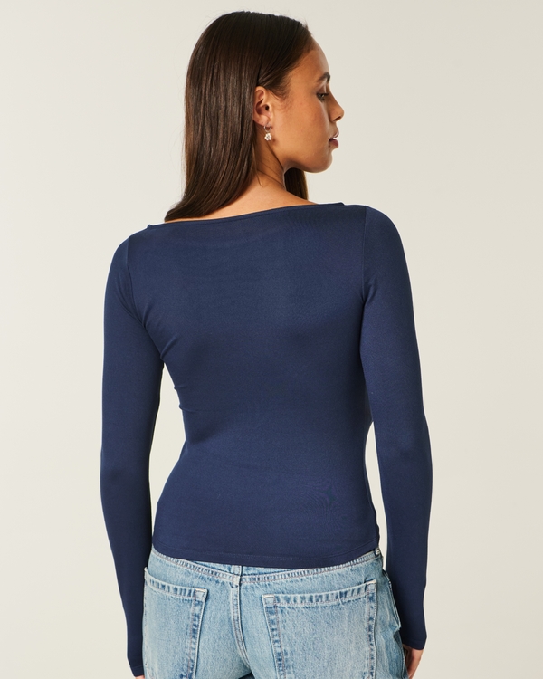 Long-Sleeve Seamless Fabric Slash-Neck Top
