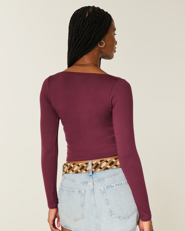 Long-Sleeve Seamless Fabric Wrap Top