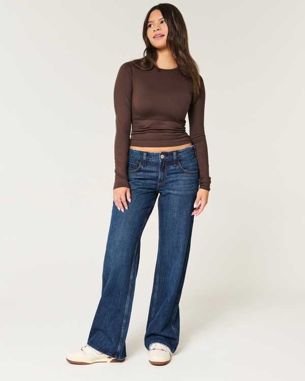 Low-Rise Dark Wash Baggy Jeans