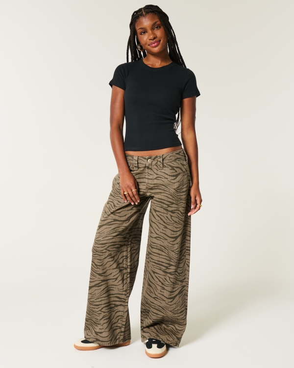 Low-Rise Zebra Pattern Super Baggy Jeans