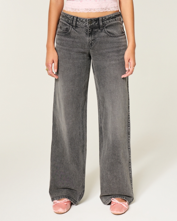 Adjustable Waist Low-Rise Grey Back Buckle Baggy Jeans