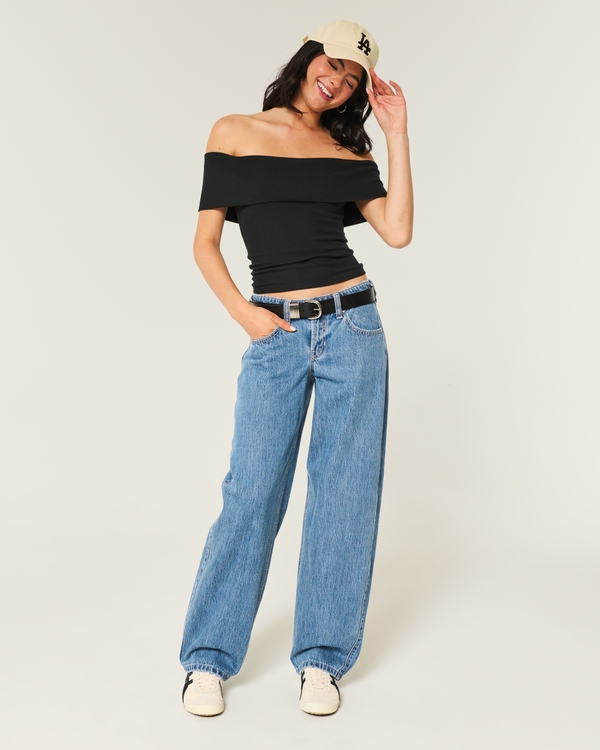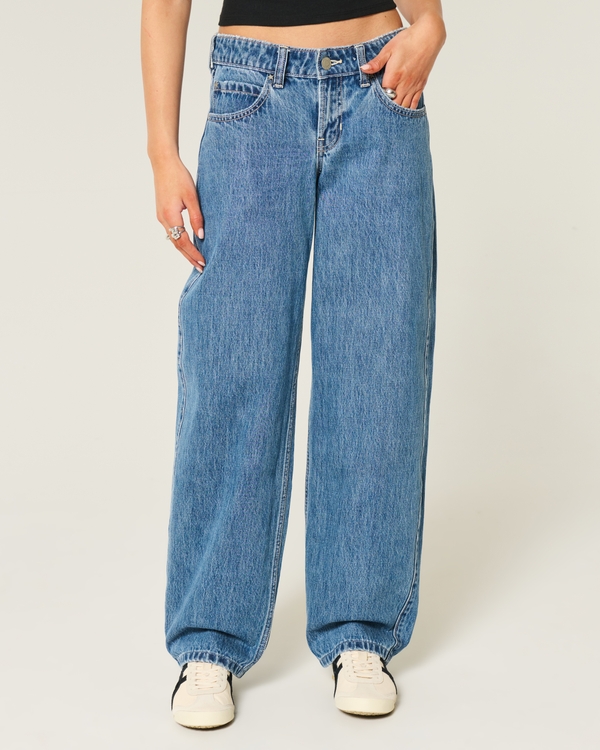 Low-Rise Medium Wash Star-Studded Tapered Baggy Jeans