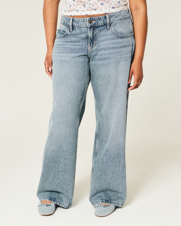 Low-Rise Medium Wash Floral Embroidered Baggy Jeans