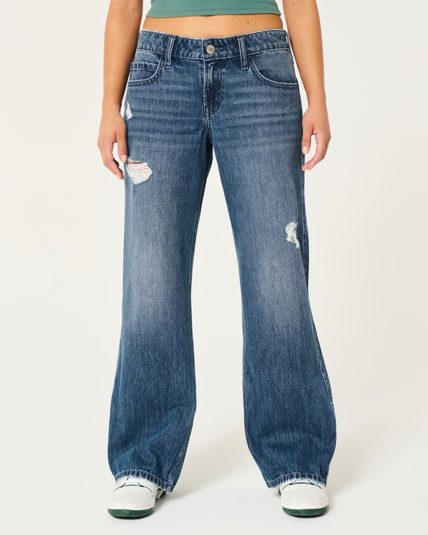 Low-Rise Ripped Dark Wash Baggy Jeans