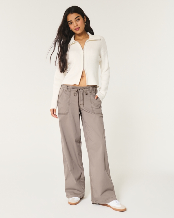 Measure the front of a pair of jeans from the bottom of the crotch seam to the top of the waist band.