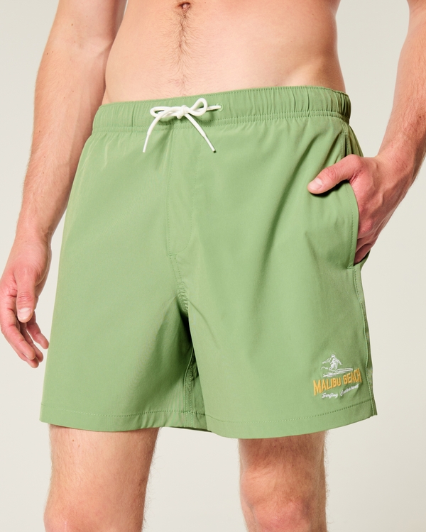 Malibu Beach Graphic Mid-Thigh Volley Swim Trunks