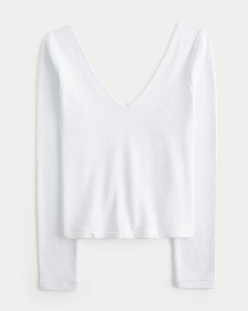 Must-Have Basics Reversible Long-Sleeve V-Neck Scoop T-Shirt