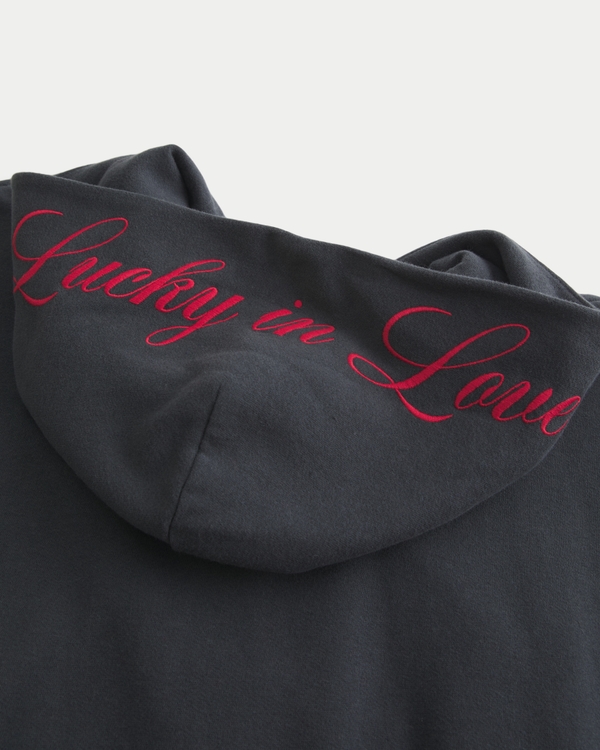 Hollister Feel Good Oversized Zip-Up Lucky in Love Graphic Hoodie