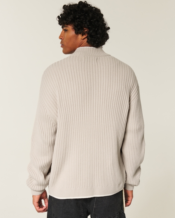 Relaxed Number Graphic Zip-Up Sweater