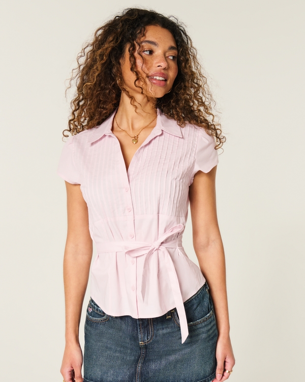 Short-Sleeve Bow Belt Shirt
