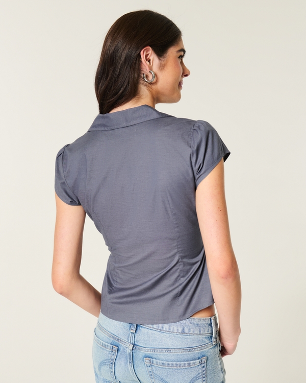 Short-Sleeve Bow Belt Shirt