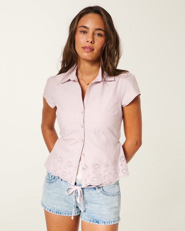 Short-Sleeve Embroidered Hem Shirt
