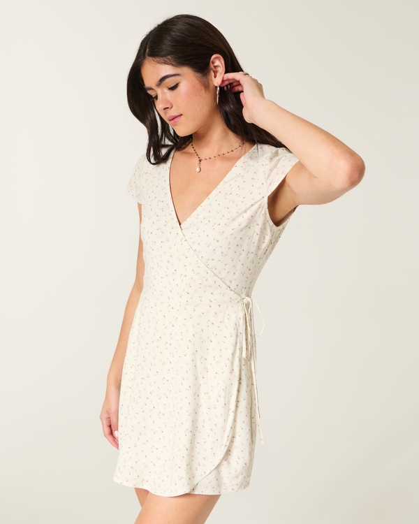 Short-Sleeve Wrap Mini Dress