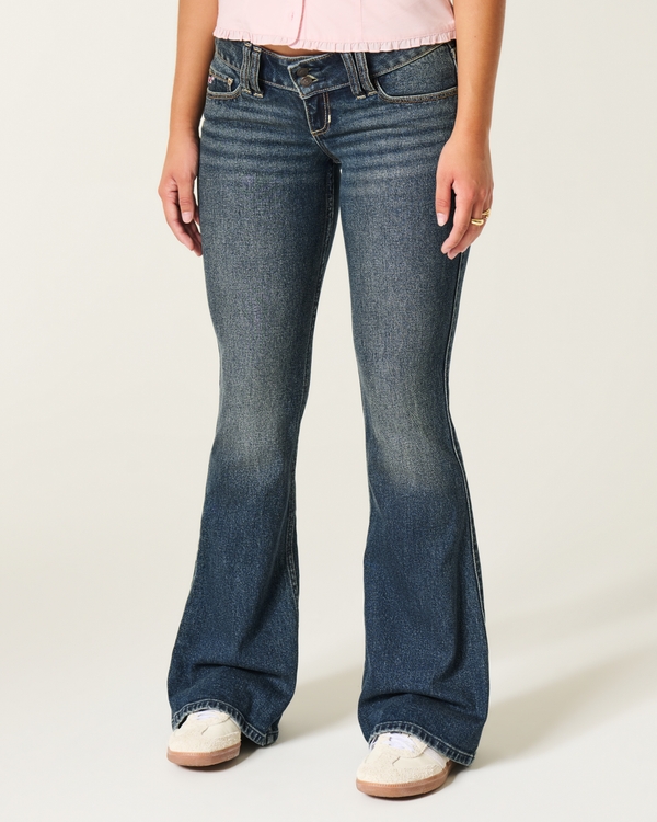 Ultra Low-Rise Dark Wash Back Buckle Flare Jeans