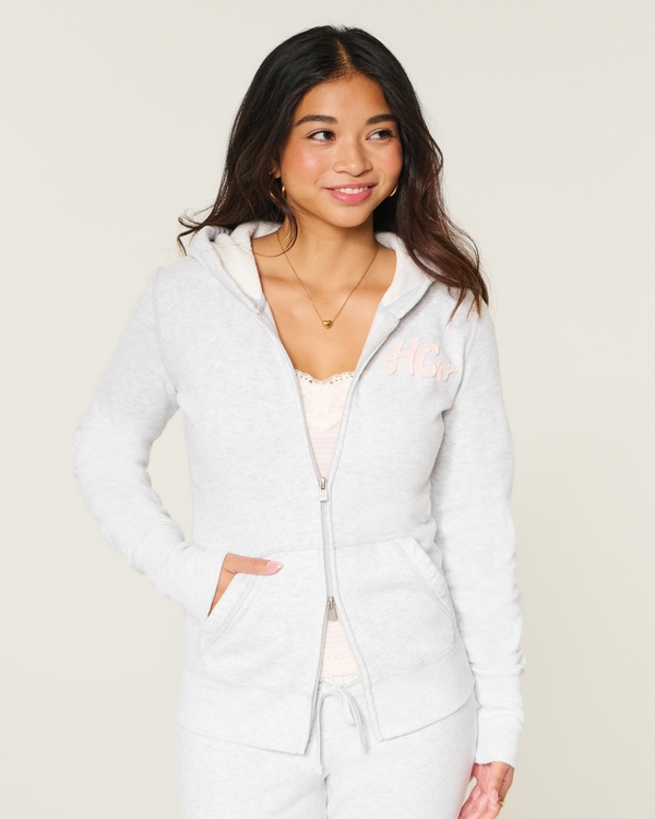 Hollister Feel Good Waffle Lined Hood Zip-Up Logo Graphic Hoodie