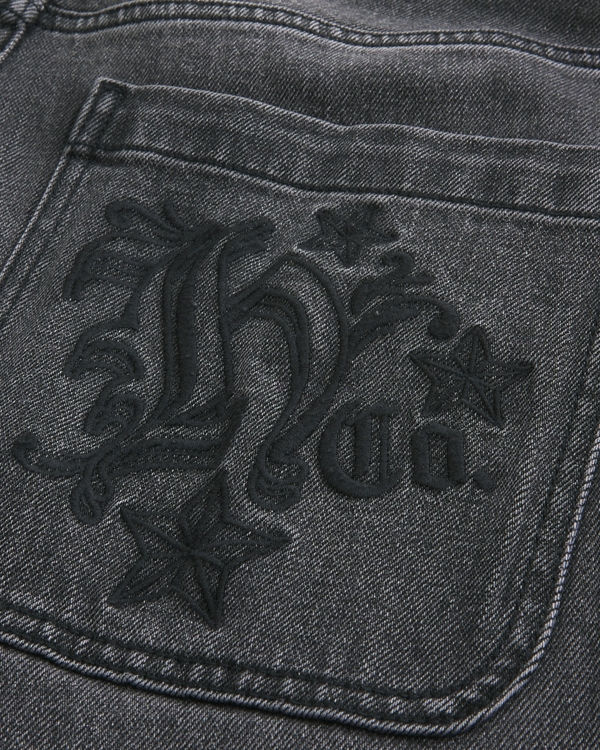 Washed Black Y2K Embroidered Back Pocket Baggy Jeans